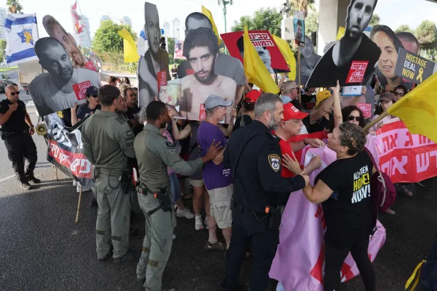 تظاهر العشرات من المحتجين الإسرائيليين المطالبين بإطلاق سراح الرهائن الذين تحتجزهم حركة «حماس»، اليوم (الثلاثاء)، أمام منزل وزير التعليم يوآف كيش، في مدينة هود هشارون، وطالبوا بـ«إنقاذ الرهائن».