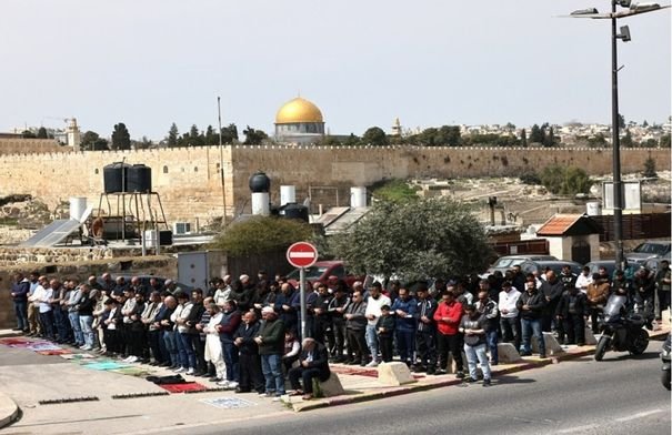 أدى مقدسيون، صلاة الجمعة الرابعة والأخيرة من رمضان، على مقربة من المسجد الأقصى المبارك، في ظل إغلاقه الكامل لليوم الـ 14 على التوالي، بذريعة “وضع الطوارئ في الحرب وتعليمات الجبهة الداخلية الإسرائيلية”.