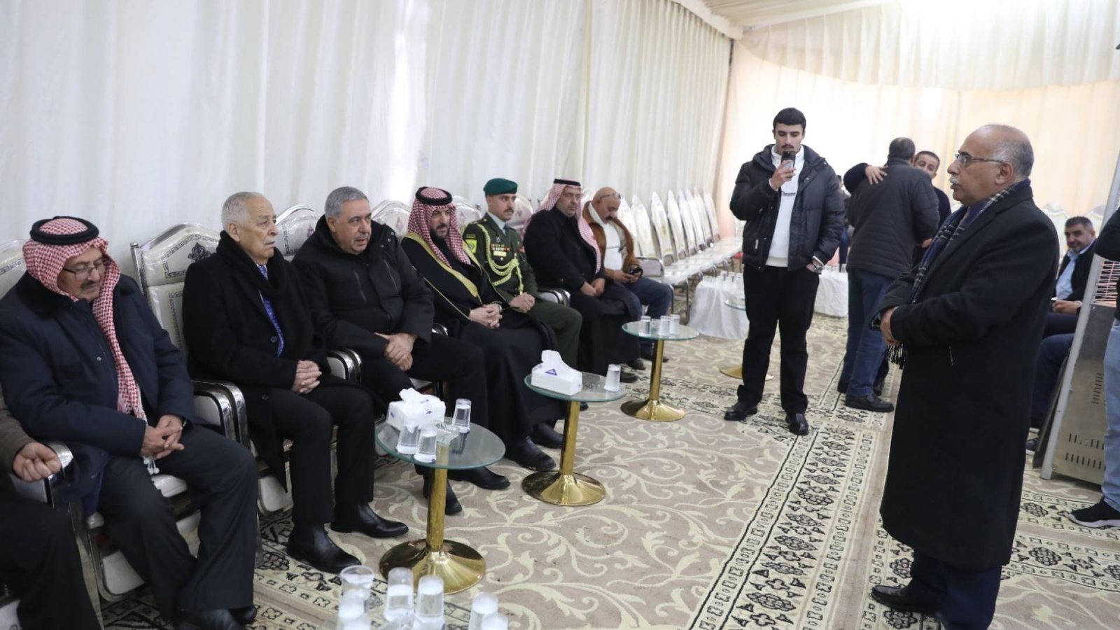 مندوبا عن جلالة الملك عبد الله الثاني وسمو الأمير الحسين بن عبد الله الثاني، ولي العهد، قدم رئيس الديوان الملكي الهاشمي يوسف حسن العيسوي، يوم الأحد، واجب العزاء إلى عشائر الحويان والمناصير وعازر.