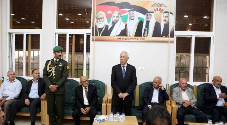 ونقل العيسوي، خلال زيارته بيت عزاء المرحوم في مدينة السلط بمحافظة البلقاء، تعازي ومواساة جلالة لملك وسمو ولي العهد، إلى ذوي الفقيد، وعموم عشيرة الغنيمات، سائلا المولى عز وجل ان يتغمده بواسع رحمته.