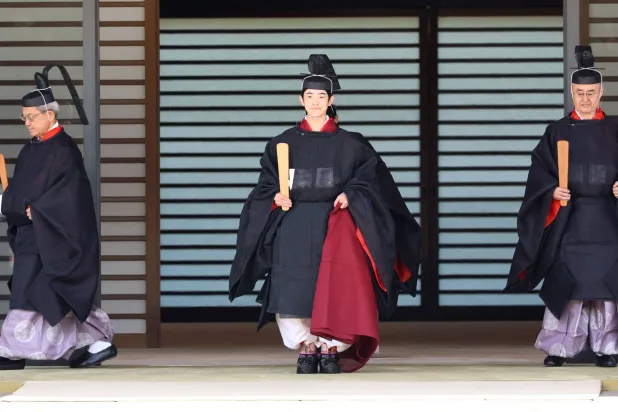 بدأت طقوس هيساهيتو، (السبت)، في منزل عائلته، حيث ظهر مرتدياً بدلة رسمية لتسلُّم التاج الذي سيُسلمه إليه رسول من ناروهيتو.