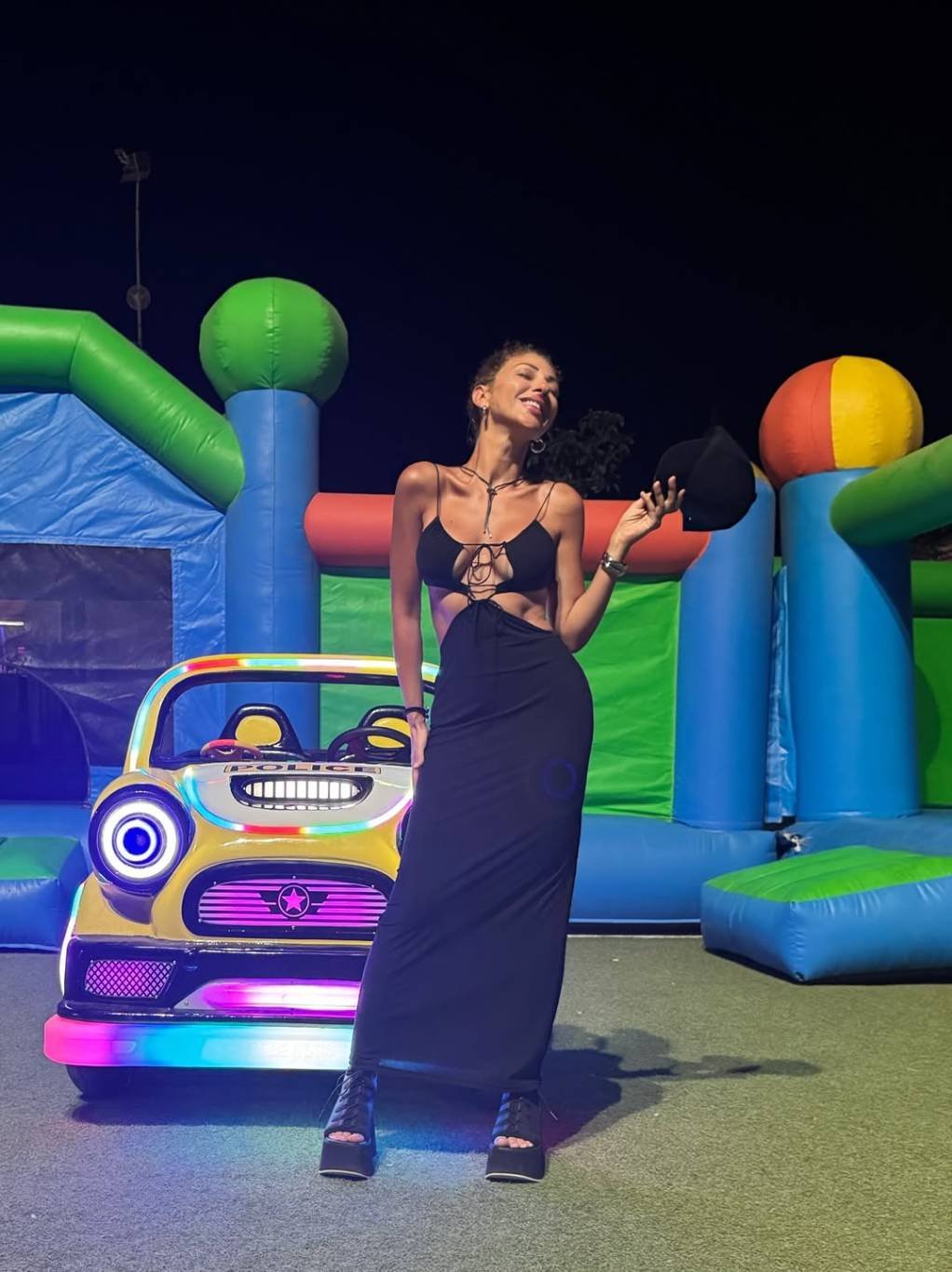 أبرز ما ميّز إطلالة ميريام كان الفستان الأسود الطويل، الذي لم يكن تصميمه تقليديًا أبدًا. تميّز الفستان بفتحات جريئة كشفت عن مناطق الصدر والبطن والخصر بطريقة مدروسة، مما أضفى لمسة مثيرة على الإطلالة، دون أن تفقد أناقتها. القصة الجريئة للفستان جسّدت توازنًا بين الجرأة والفن، وهو ما تجيده ميريام بمهارة.