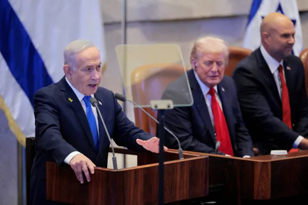 ووصف نتنياهو، في كلمة أمام الكنيست بحضور ترمب، مقترح ترمب بأنه «ينهي الحرب ويمهد الطريق لتوسعة تاريخية لنطاق السلام»، قال موجها كلامه لترمب: «أنت ملتزم بالسلام وأنا أيضا ملتزم به، ومعاً سنحقق السلام».