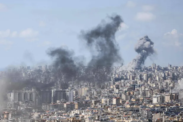 الدخان يتصاعد من مواقع الغارات الجوية الإسرائيلية بضاحية بيروت الجنوبية (أ.ف.ب)