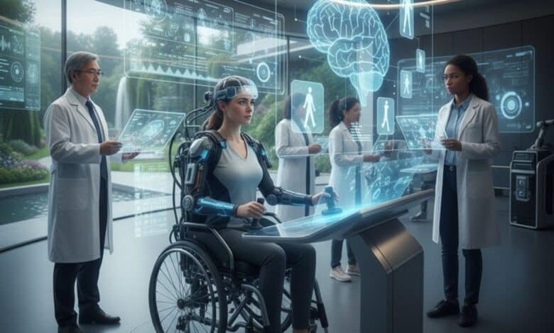 طوّر باحثون نظام واجهة الدماغ والحاسوب (Brain–Computer Interface System) غير جراحي ومدعوم بالذكاء الاصطناعي، يتيح للمستخدمين التحكم في ذراع روبوتية أو مؤشر شاشة بسرعة ودقة عالية. ويعمل النظام على تحويل إشارات الدماغ المسجلة بتقنية تخطيط النشاط الكهربائي للدماغ (EEG) إلى أوامر حركية، مع وجود كاميرا مدعومة بالذكاء الاصطناعي تفسر نوايا المستخدم لحظيًا.