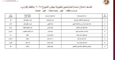 نشرت الهيئة الوطنية للانتخابات الكشوف المبدئية للمترشحين لعضوية مجلس الشيوخ 2025 ورموزهم، عن دائرة محافظة الفيوم والبالغ عددهم 9 مترشحين والمعلقة بمحكمة الفيوم الابتدائية.