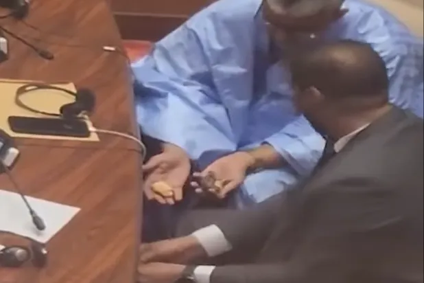 وظهر في مقطع الفيديو اثنان من نواب المعارضة، وبحوزتهم كيس، قال ناشر الفيديو، إنه يحتوي على قطع من «القديد»، وهو نوع من اللحم المجفف، يستهلكه سكان الصحراء الموريتانية بكثرة، وخاصة خلال فصل الشتاء.