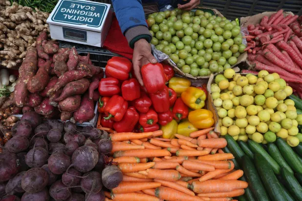 سيدة تحصد السبانخ في نيودلهي في الهند (أ.ف.ب)